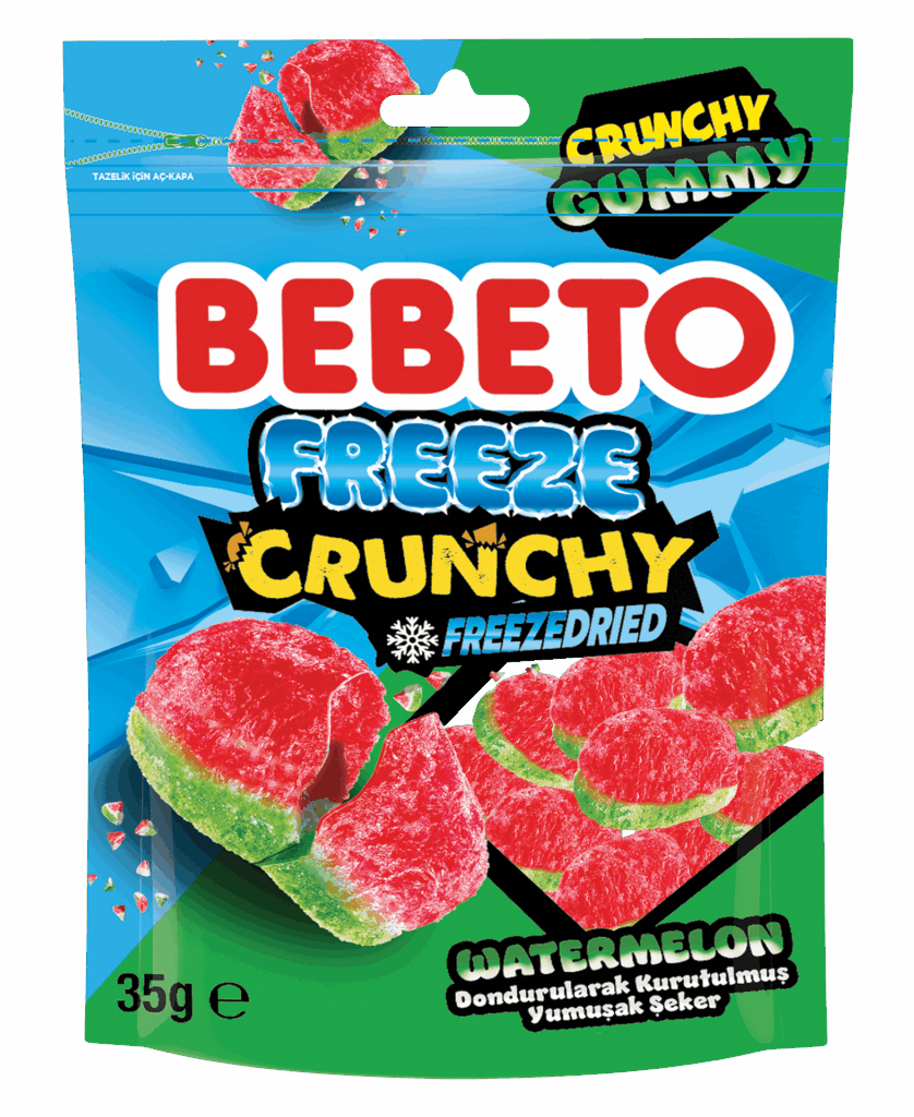 Składniki: Syrop glukozowy, cukier, sok jabłkowy z zagęszczonego soku jabłkowego, skrobia kukrydziana, zelatynwa wołowa, regulator kwasowości (kwas cytrynowy), kwasy (kwas winowy, kwas jabłkowy), aromat, koncentraty owocowe i warzywne (z jabłka, rzodkiewki, czarnej porzeczki, czarnej marchwi) proszek owocowy (z arbuza), barwniki (kompleksy miedziowe chlorofilin, luteina). Produkt może zawierać zboża zawierające gluten i mleko.