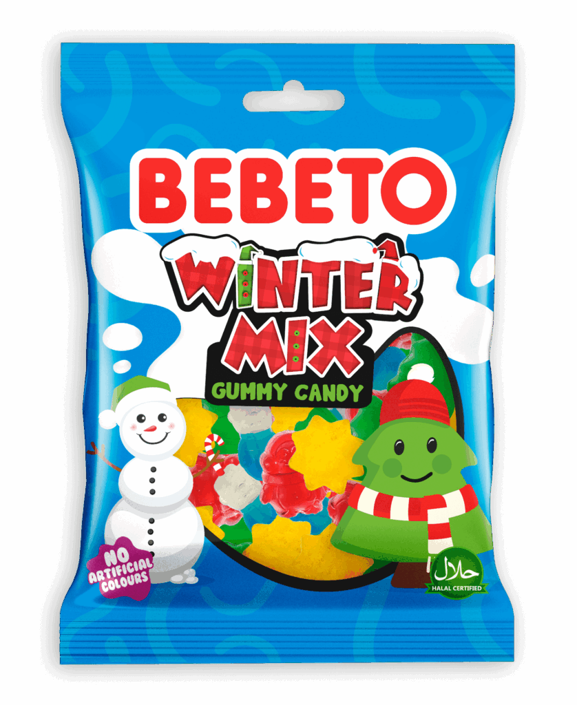 – to pyszna, zimowa propozycja dla małych i dużych miłośników słodyczy. W opakowaniu znajdziesz żelki w formie pingwina, bałwanka, choinki oraz gwiazdy, które wprowadzają świąteczny i zimowy klimat.