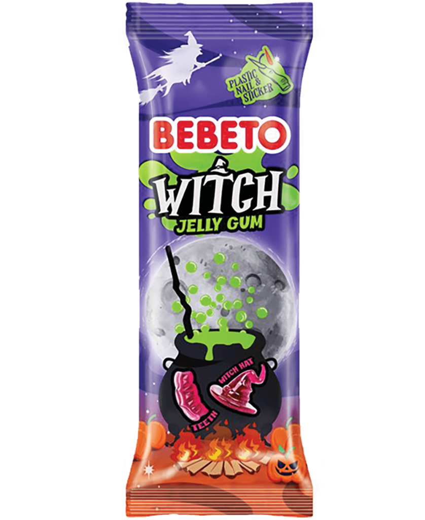 to zabawne halloweenowe żelki w kształcie zębów i kapelusza czarownicy. Miękkie i elastyczne, zachwycają intensywnym malinowym i coli smakiem. Dodatkowo w zestawie znajduje się paznokieć na palca, który pozwala poczuć się jak prawdziwa czarownica.